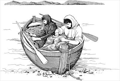 18 Iesu ghe kasukasu elaolao tale sama ateo talia ngateae eGalilii, me ghe tarala tue me nenga alua, Saemon la kolokoloa va Pita etana, me nengane ta Andru. Lalu ghe lukuluku ta tau ngelamana ilalua. 19 Me ghe uela ta ngetairarua va, “Amalu mae usieghi me aue agheleiemalua me amalu tau ngai luku taumattu.” 20 Me arovaeaata ta lalu ghe velu elokoila uvena me lalu ghe usiela.
